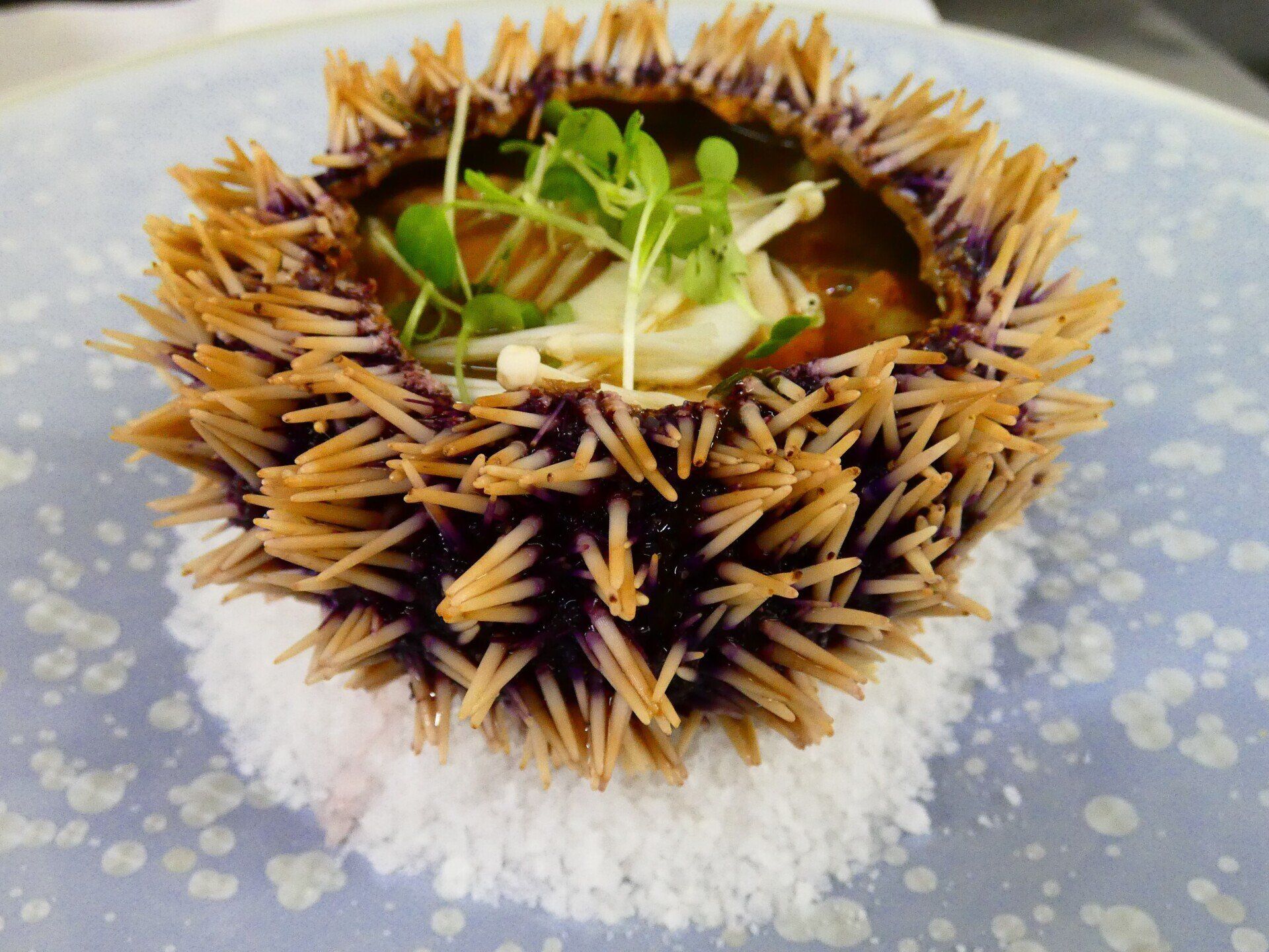 Roasted lobster, some sautéed seasonal vegetables, lobster cream with champagne